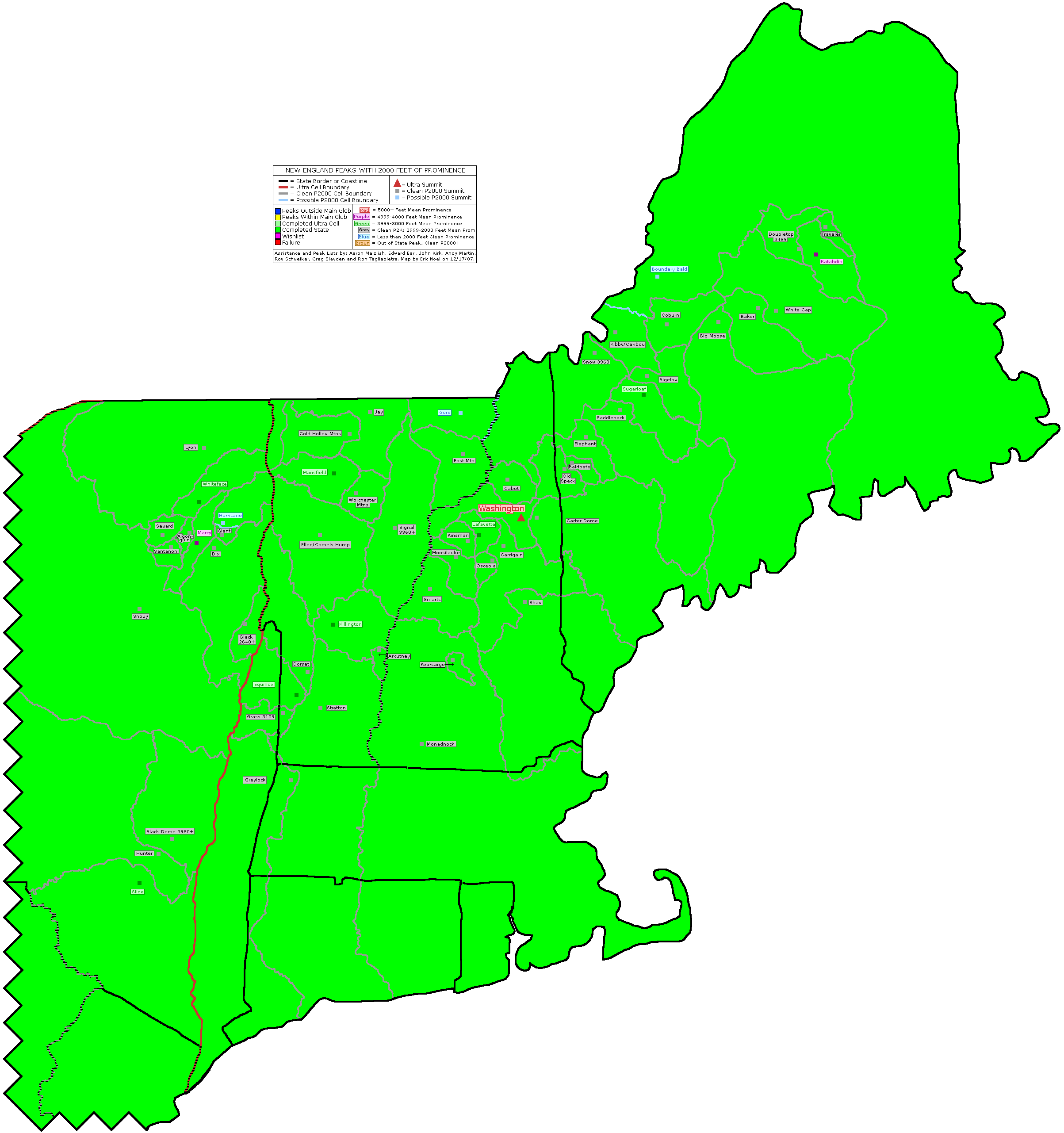 Roy Schweiker Northeastern United States 2,000+ Foot Prominence Completion Map