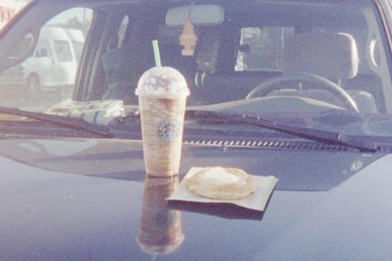 Starbucks java chip frappuccino and a cheese danish await enjoyment - so fulfilling their destinies. |