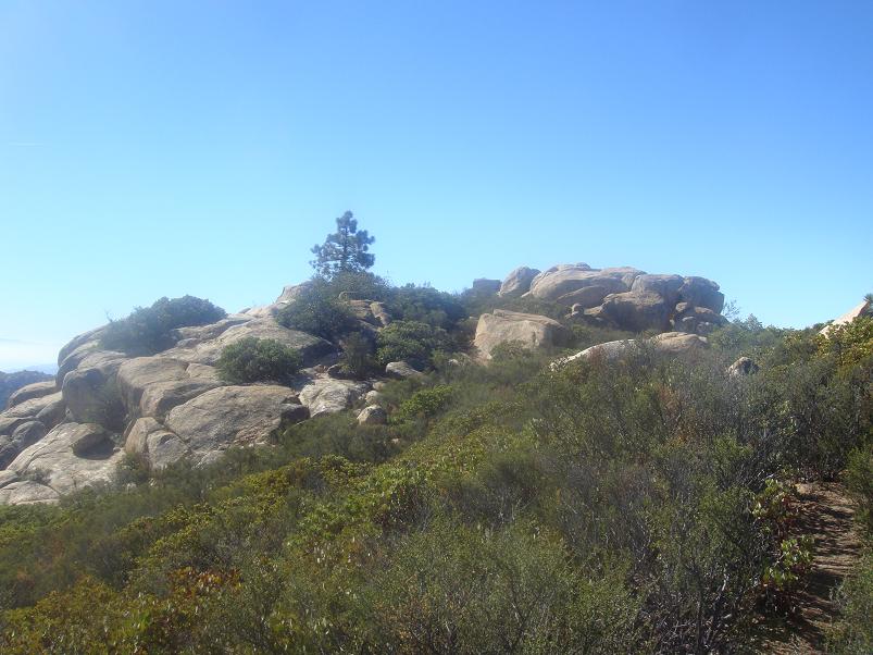 The summit area is broad and relatively flat, with several candidate highest points - each featuring large boulders. I search in vain for some path leading to a northwest area with 4,657 foot spot elevation at (32.75776° N, 116.59114° W), and which seems to be the highest point at peakbagger.com.